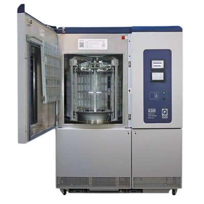 The Q-SUN Xe-8 xenon arc tester offers a huge-capacity rotating rack. Two different sizes of standard specimen holders are supported.