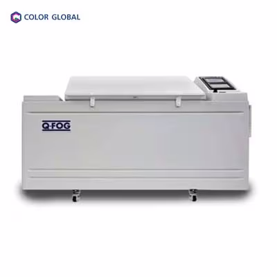 - Q-FOG CRH1100-HTC: conventional salt fog and Prohesion tests, humidity control, overhead swaying shower bar, 1103 liter chamber volume