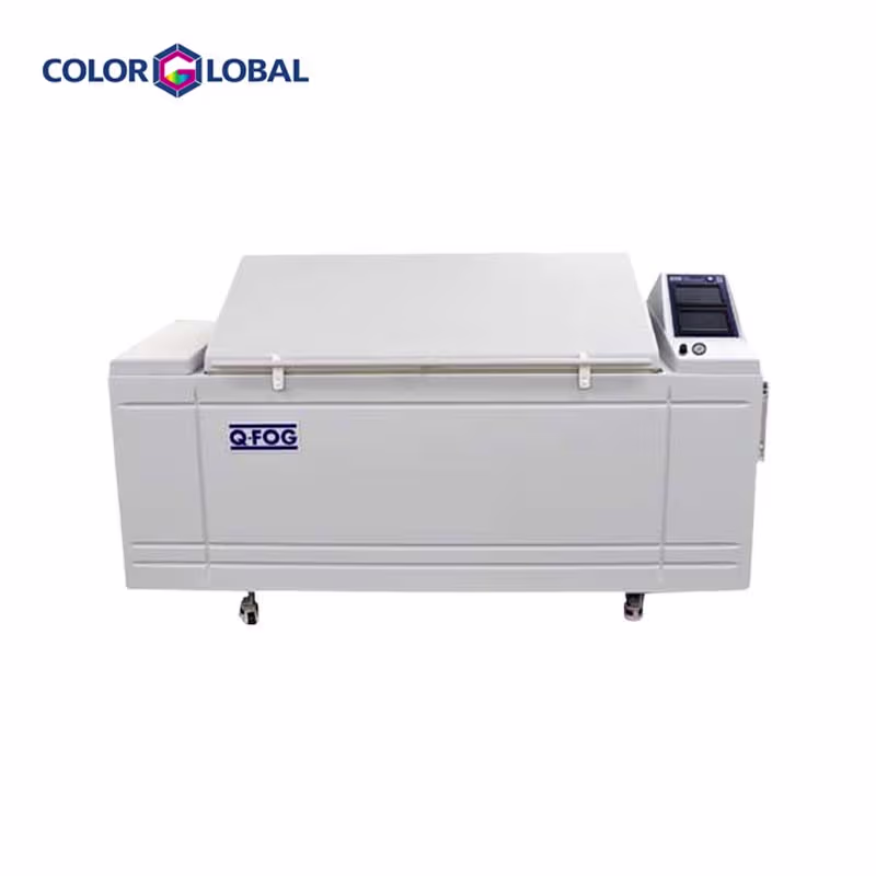 - Q-FOG CRH600-HSC (or 1100-HSC): conventional salt fog and Prohesion tests, humidity control, fixed shower module, 640 liter (or 1103 liter) chamber volume